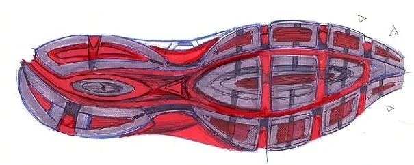 The project met an early grave for the unique-to-me reason that it looked better than a $120 shoe that we were launching at the same time. Because of the risk of cannibalization, it never made it to market. I still think this design and approach indicated my maturity in understanding the classic, noisy, layered running shoe style.